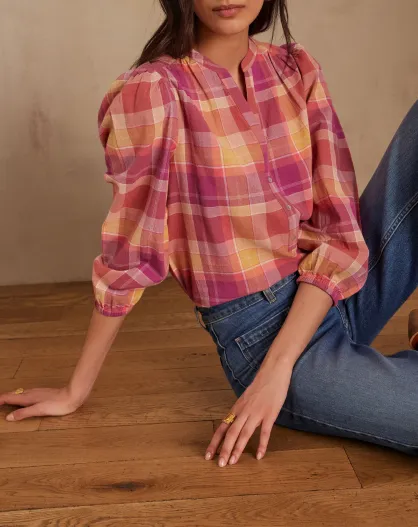 Prudence Bl dunkelfuchsiafarbene karierte Bluse