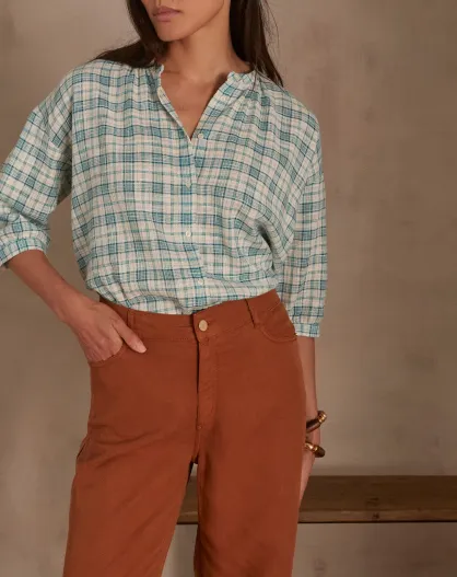 Belle Bl türkisfarbene karierte Bluse