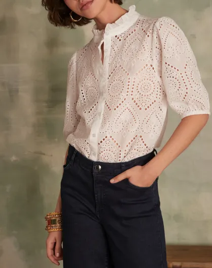 Calina Bl Bestickte schlichte weiße Bluse
