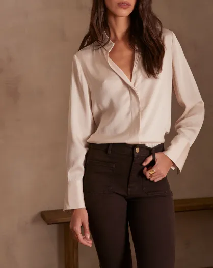 Basile Bl Cremefarbene Satinbluse