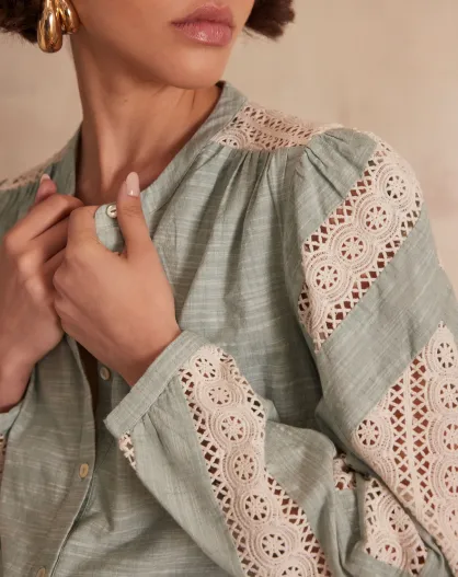 Cathel Bl Bluse Mintfarbene Stickerei