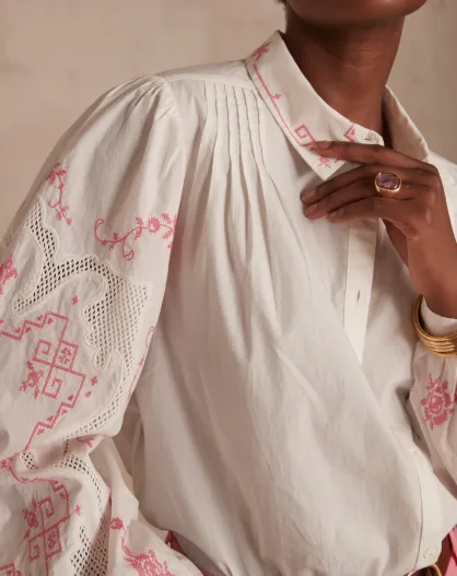 Clementine Bl Hellrosa bestickte Bluse