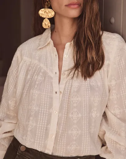 Cremefarbene Bluse mit Perlenstickerei