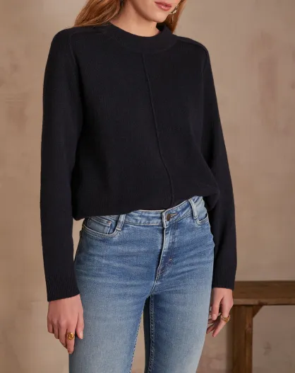 Einfarbiger marineblauer Pullover Clinton