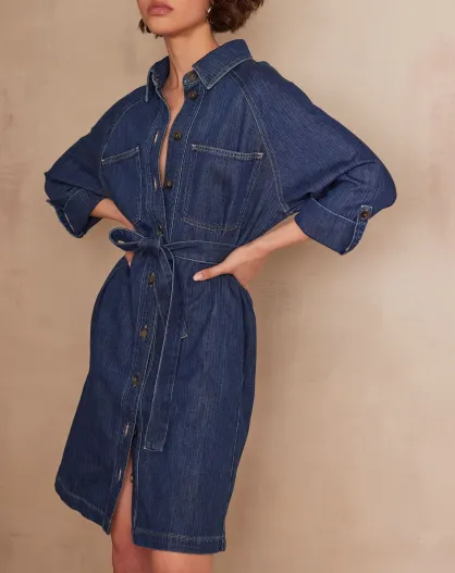 Lilou R dunkles indigofarbenes Jeanskleid