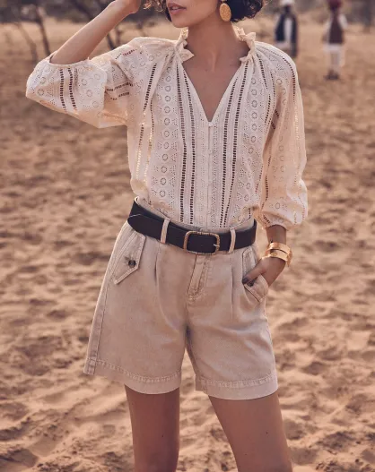 Beigefarbene, übergefärbte Shorts von Maurice Sh
