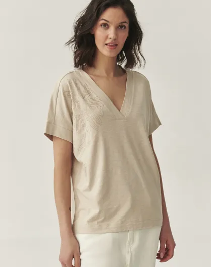 Celia 1 beigefarbene Melange-Strickbluse
