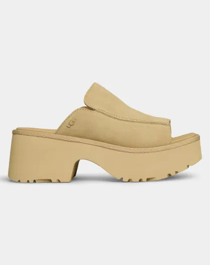 Beigefarbene Keil-Pantoletten aus Veloursleder von New Heights