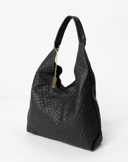 Nicolina schwarze Ledertasche - 41x11x42 cm