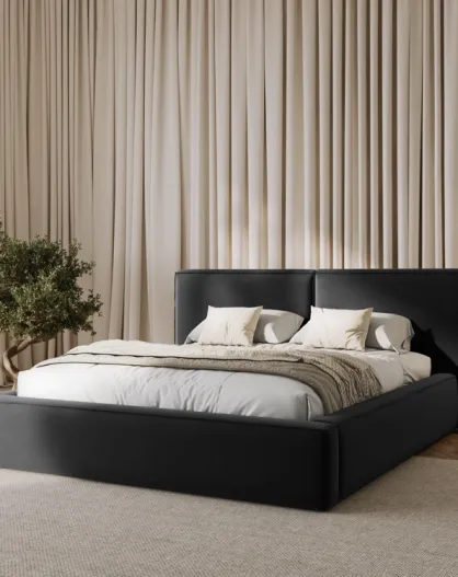 Kommode mit Samtkopfteil für Doppelbett Arendal grau — 228 x 214 x 97,5 cm