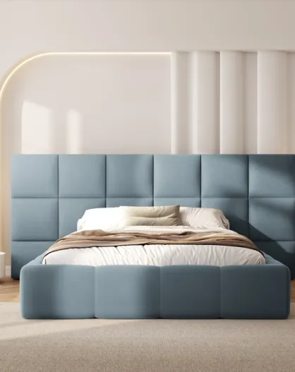 Isa Beistellbett mit Samtkopfteil für Doppelbett, 230 x 250 x 125 cm, hellblau
