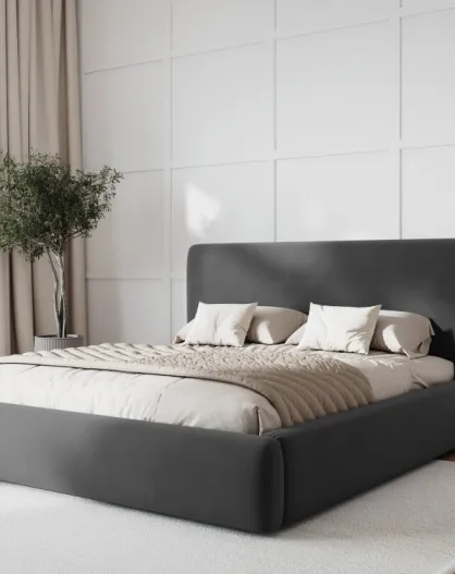 Colonel Boxerbett mit Samtkopfteil, 220 x 220 x 100 cm, Dunkelgrau