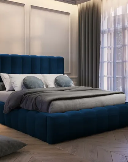 Gina Königsblaues Kofferbett mit Kopfteil aus Samt, 230 x 205 x 125 cm