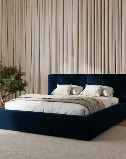 Arendal Königsblaues Doppelbett aus Samt mit Samtkopfteil — 228 x 251 x 97,5 cm