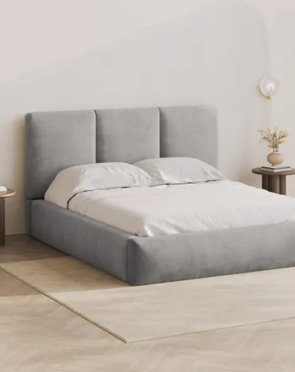 Brustbett mit Chenille-Kopfteil Bona hellgrau - 220x220x100cm