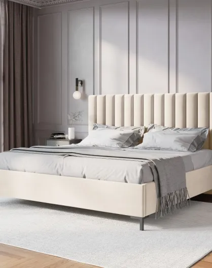 Apollo Kofferbett mit Samtkopfteil, 220 x 150 x 130 cm, hellbeige