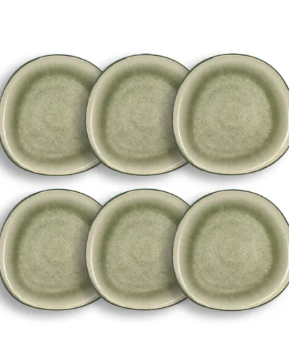 Set aus 6 olivgrünen Speisetellern aus Steinzeug, D.20,5 cm