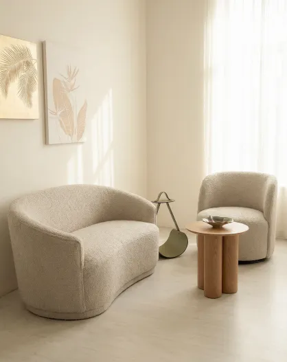 2-Sitzer-Sofa, geschlungener Stoff, graues Leinen, 148 x 73 x 77,5 cm