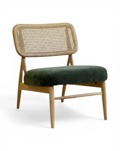 Liegestuhl aus Gummiholz und dunklem moosgrünem Rattan - 63x70x74 cm