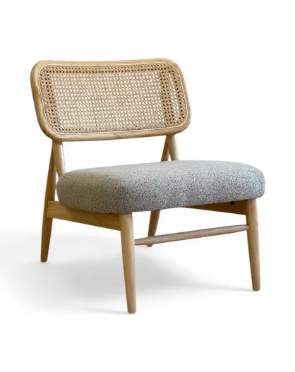 Liegestuhl aus Gummiholz und gesprenkeltem taupefarbenem Rattan - 63x70x74 cm