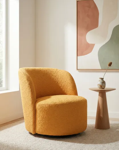 Drehsessel aus safrangelbem lockigem Stoff - 71x74x77 cm