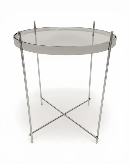 Runder Edelstahl-Säulentisch mit silbernem Glas - 48x48x59 cm
