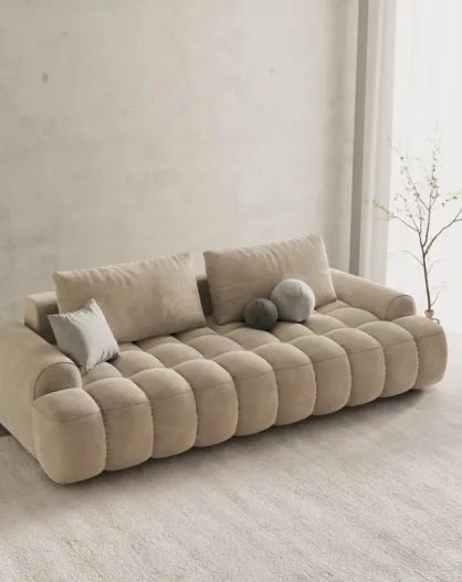 Ausziehbares Samtsofa mit 4-Sitzer-Stauraum hellbeige - 250x100x84 cm