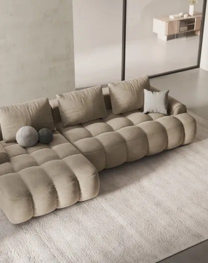 Wandelbares linkes Ecksofa aus Samt mit 3-Sitzer-Stauraum, hellbeige — 275 x 142 x 84 cm