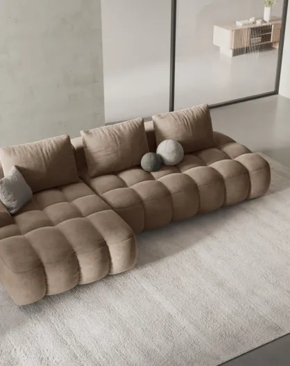 Wandelbares linkes Ecksofa aus Samt mit 3-Sitzer-Stauraum, dunkelbeige — 275 x 142 x 84 cm