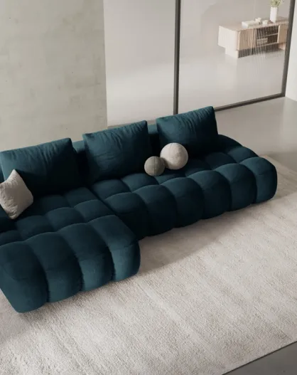 Wandelbares linkes Ecksofa aus Samt mit Stauraum für 3 Sitze, dunkelblau — 275 x 142 x 84 cm