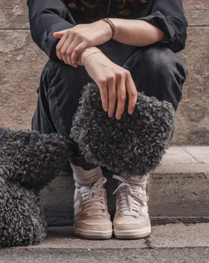 Grauer Kunstpelzbeutel - 21x18 cm