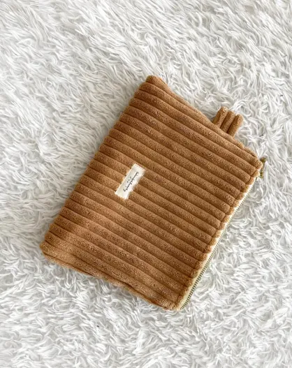 Beigefarbene Schminktasche aus Kord - 20x15 cm