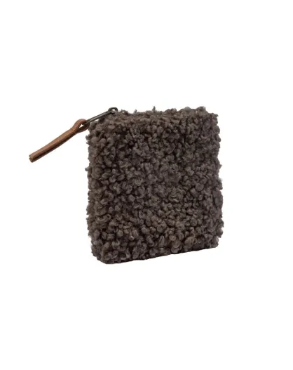 Geldbörse aus Kakaofarbenem Kunstfell - 12x12 cm