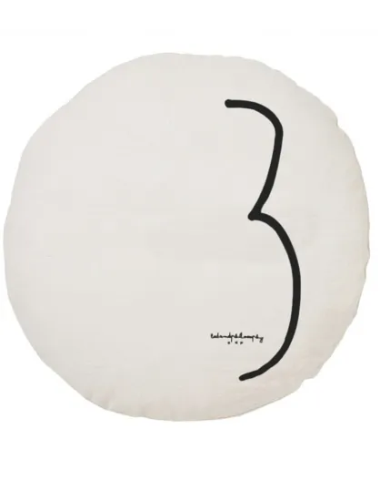 Rundes Leinenkissen mit Federn, Siebdruck, 63 cm