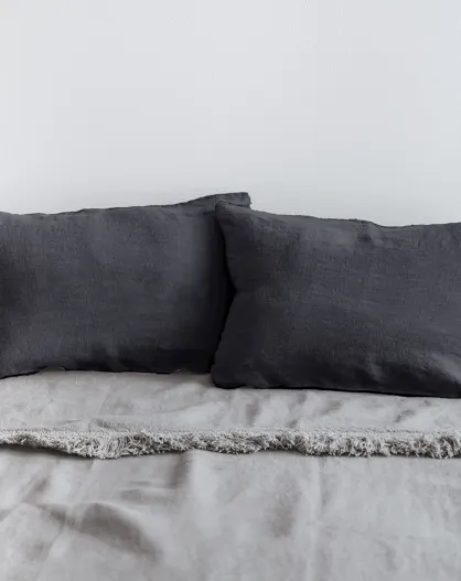 2 schwarze Leinenkissen - 25x40 x2 cm