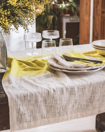 Tiefgefärbte gelbe Mini-Tischdecke aus Baumwolle - 100x100 cm
