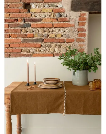 Mini-Tischdecke aus Baumwolle und Leinen in Bronze, 100 x 100 cm