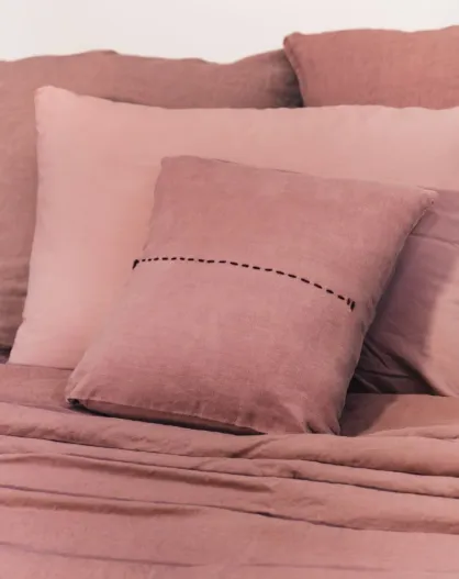 Besticktes rosafarbenes Leinenkissen - 35x35 cm
