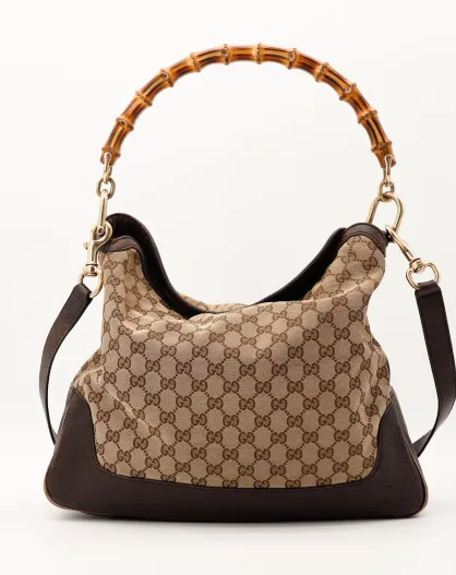 Beigefarbene Hobo-Tasche aus Bambus - Sehr guter Zustand - 39 x 31 x 8,5 cm