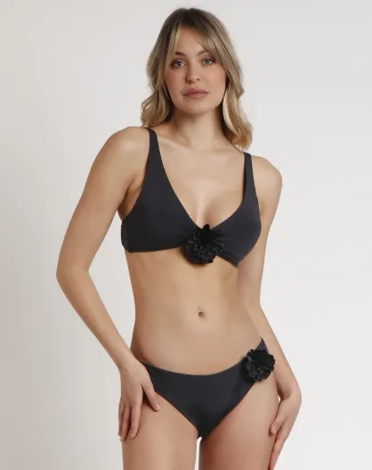 Schwarzer, drapierter, rückenfreier 2-teiliger Badeanzug