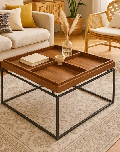 Quadratischer Couchtisch mit reversibler, unterteilter Platte Duplix Haselnussholz - 80x80x45 cm