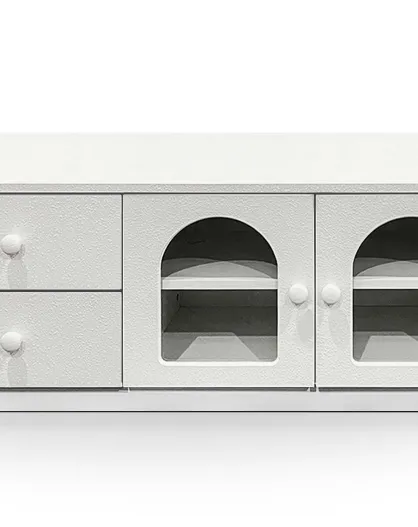 Couchtisch mit Türen und Schubladen im natürlichen schicken Stil Volos weiß strukturiert - 100x60x39 cm