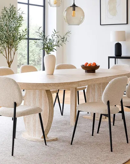 Icarios ausziehbarer ovaler Tisch mit Designbeinen in beigefarbenem Travertin-Effekt — 110x100x76 cm