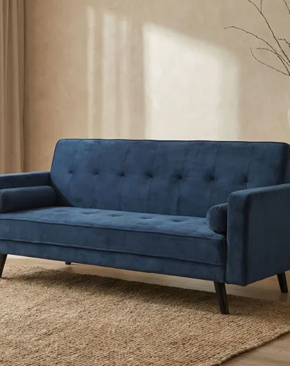 Skandinavisches Clic-Clac Schlafsofa aus Slow Blue Samt — 196x150x90 cm
