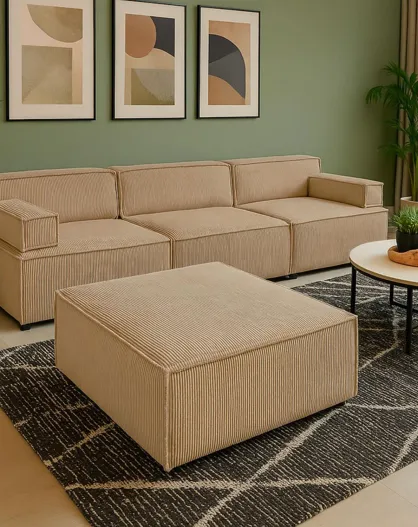 Beiges modulares Cordsofa Benoit - 258x172x68 cm