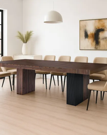 Virzon Ausziehbarer rechteckiger Tisch aus Haselnussholz und schwarzen Rillen - 100x90x76 cm