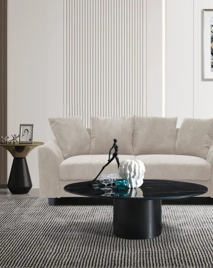 Modernes 3-Sitzer-Sofa aus beigem Mozart-Kord - 182x88x80 cm