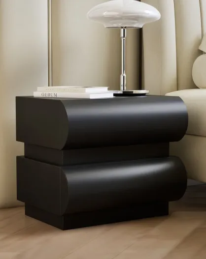 Nachttisch mit 2 abgerundeten Schubladen schwarz Mezade - 45x35x40 cm