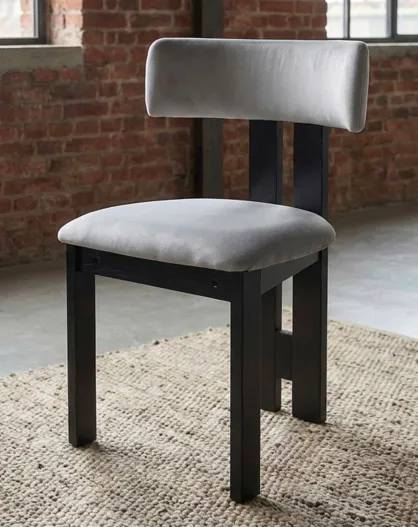 Ceriz Design-Esszimmerstuhl aus grauem Samt und schwarzem Holz - 45x48x78 cm