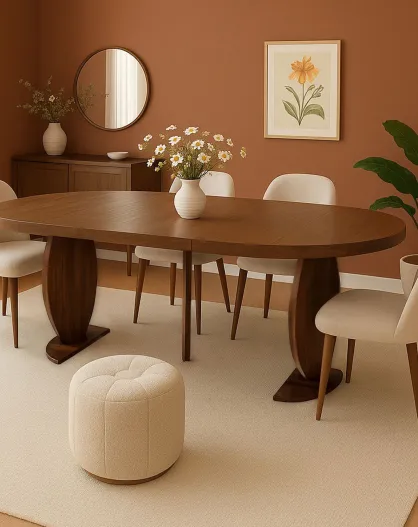 Icaros ausziehbarer ovaler Tisch mit Designbeinen aus Nussbaumholz - 110x100x76 cm